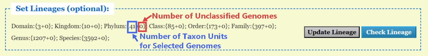 Update Lineage: Update the count of genomes for each taxonomic category.Check Lineage: Check and revise the lineage manually.