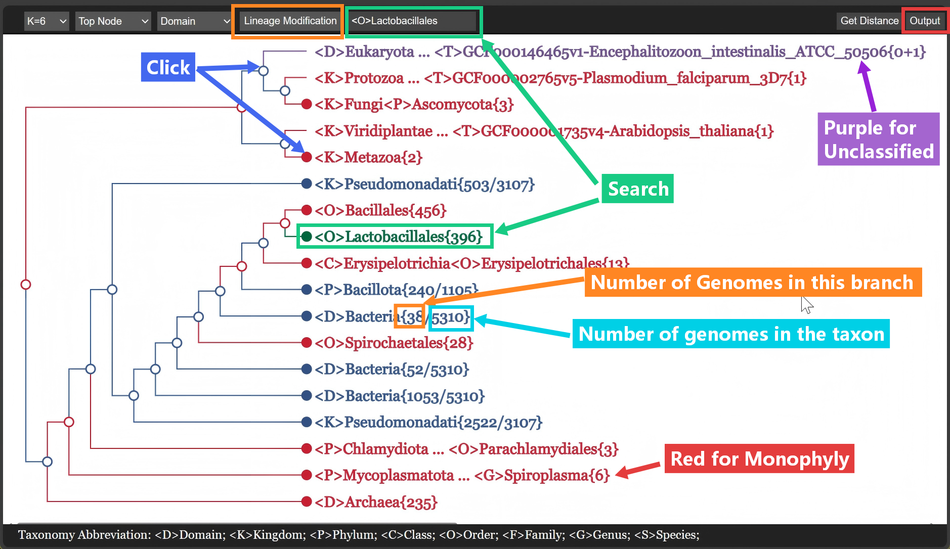 Lineage Modificationbutton to edit the lineage information (Similar to redo Step 3)Outputbutton to draw the tree to output